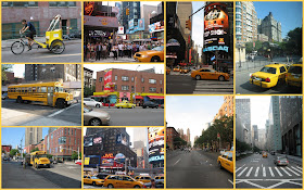 Les premières impressions quand on arrive à New York : les taxis ! ça grouille de partout. Sur toutes les artères, 3 véhicules sur 4, je dirais, sont des taxis... Il y a aussi des bus, les fameux bus jaunes (je les croyais à la campagne, moi ceux-là), et des pedicabs. Alors là, les taxis à pédales, ils ont du mérite !